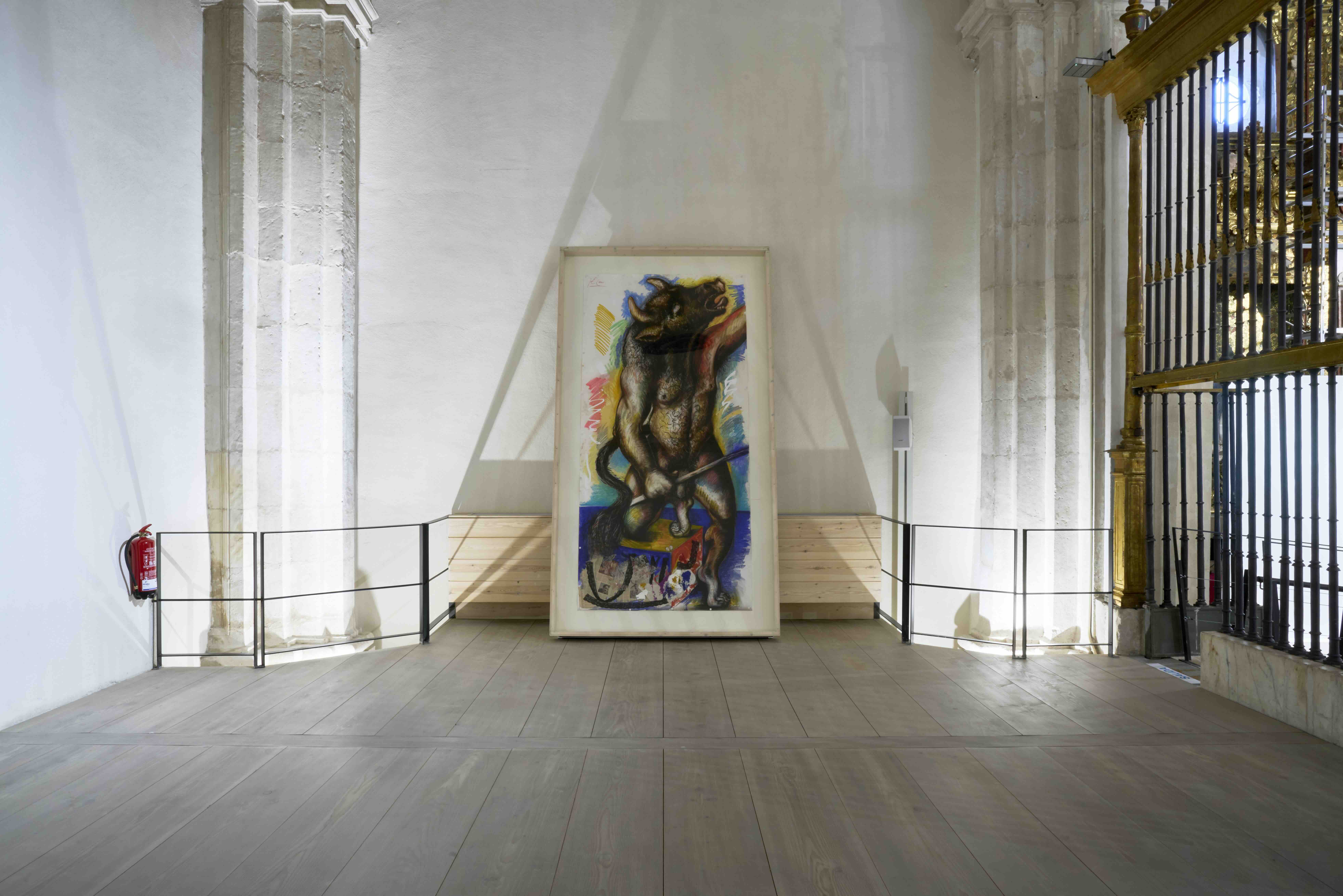 Entre las piezas expuestas, destaca la presencia de varias desconocidas. En primer lugar, la instalación del interior de la sede de la Confederación Hidrográfica del Segura en el Palacio Fontes de Murcia, que nunca había sido mostrada en público y que representa las tres fértiles vegas del río. Además, junto con series famosas, como Minotauro (2004), se han rescatado piezas de la serie El retablo de la lujuria (1999) y 24 obras vinculadas inicialmente a la misma, si bien pertenecen a una serie inédita llamada Bestiario, que siguió desarrollando desde entonces, acompañada por varios cuadernos de artista.