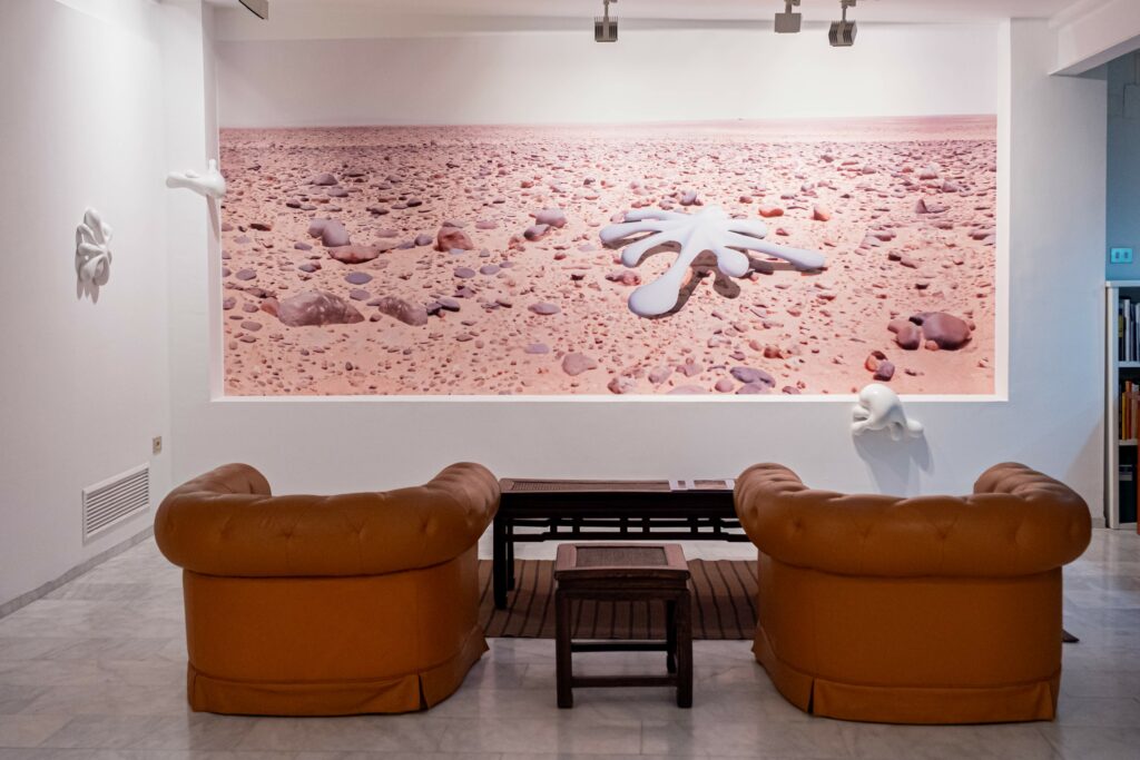 De esta manera, toda la escena se desarrolla absorbiendo el aura de este paisaje primordial, que va más allá de las paredes de la galería, quizás para entrar en contacto con alguna verdad original, aunque sin caer en grandes gravedades físicas o simbólicas, gracias –como siempre– al sentido del humor que les caracteriza.